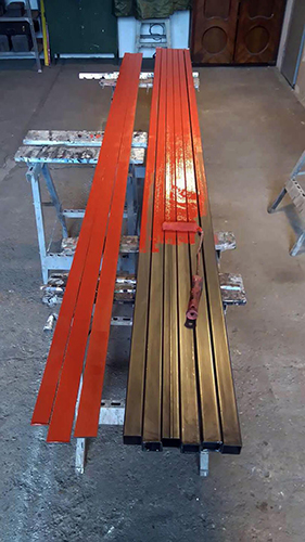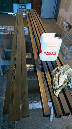 Schritt 2: (wenn die Oberfläche nicht verzinkt oder gesintert werden soll) werden die Oberflächen mit einer Korrosionsschutzgrundierung beschichtet. Das erleichtert unsere eigene Arbeit, denn es ist besser und einfacher, mit sauberem Material zu arbeiten.